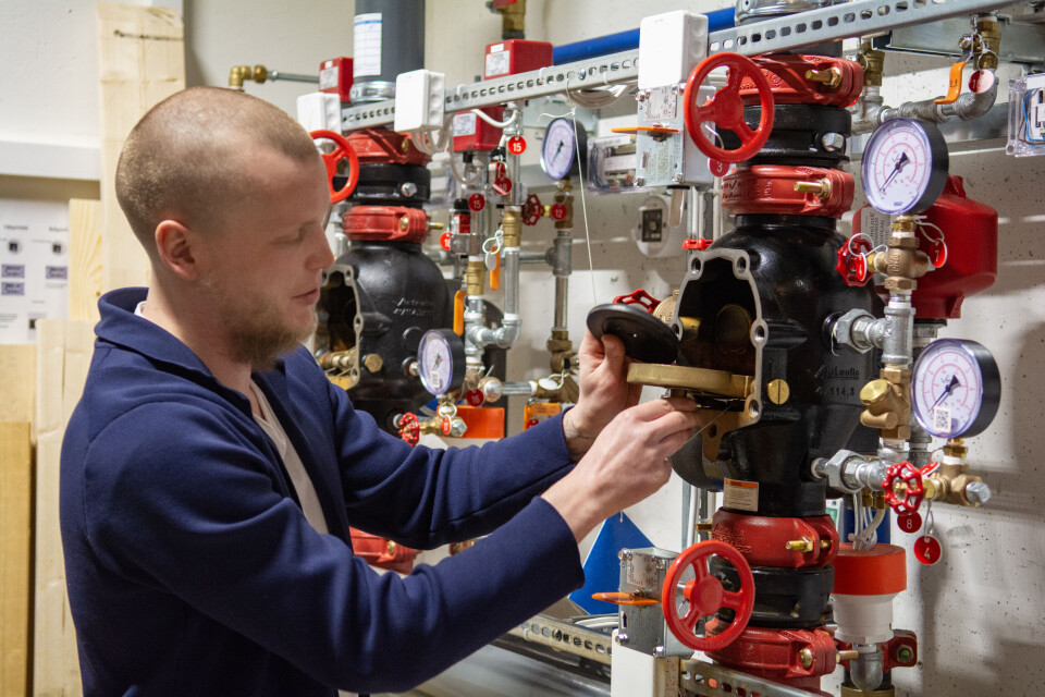 – Vi skal ikke bruk all verdens tid på teorien, selv om den er viktig nok. Vi skal ut i rommet bak oss her og ta på ventilene, skifte pakninger og få fingrene våre borti det. Det er sånn vi virkelig lærer, sier Andersen.
