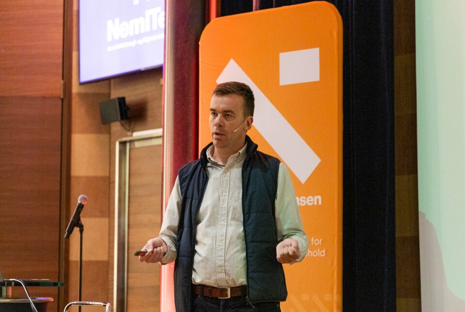 Peder Ward fra GK avsluttet med AI i praksis: Ved å bruke algoritmer og værdata på eksisterende systemer, reduserte de energiforbruket med 33 % i et pilotprosjekt – uten å installere én eneste ny sensor.