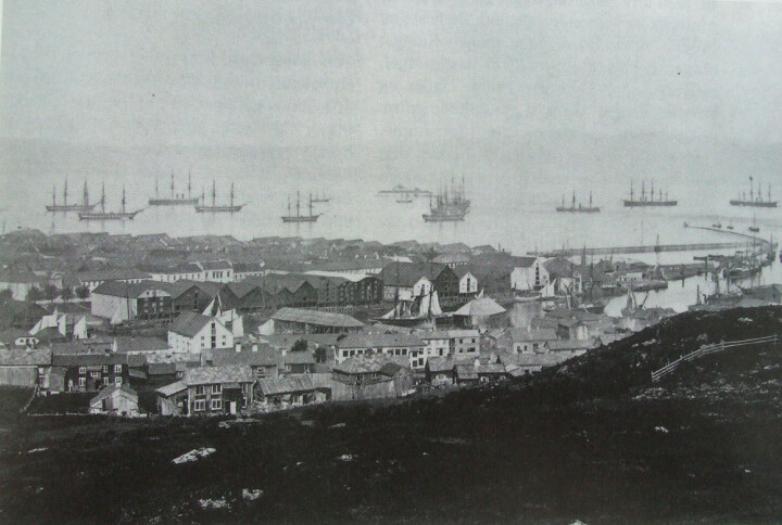 Slik så Trondheim Havn ut i 1873, et år før Lund startet bedriften. Foto: K. Lund